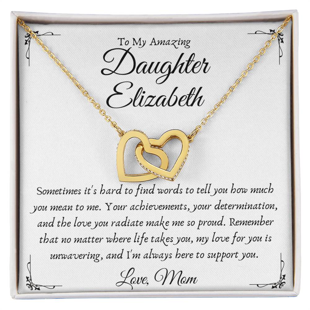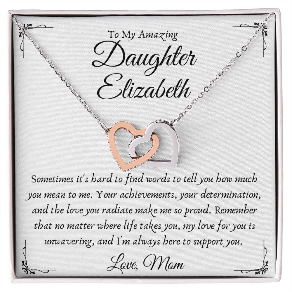 Celebrate the bond with your daughter through the Elegance Refined Interlocking Hearts Necklace. Order now to secure a timeless piece that encapsulates your emotions and serves as a beautiful reminder of your enduring relationship.